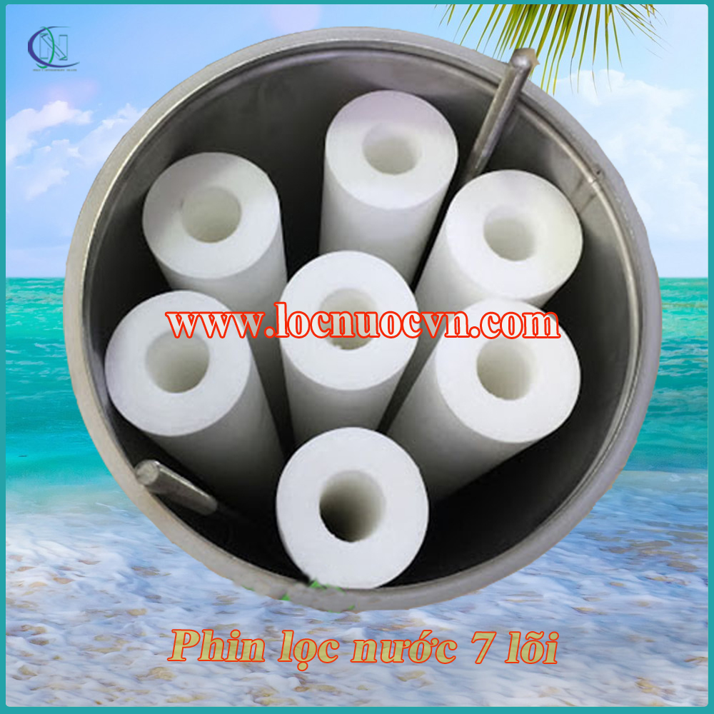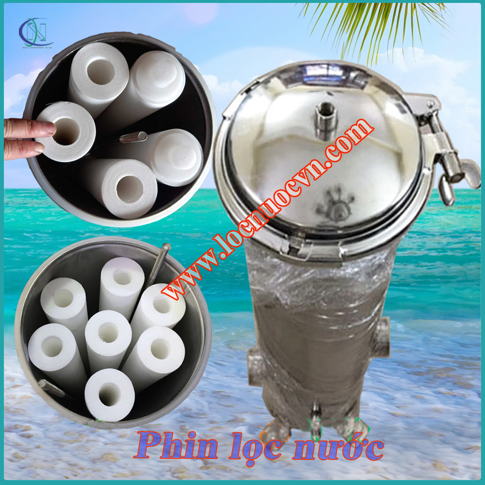 Phin lọc nước được gia công bằng inox 304 tùy theo công suất cần lọc nước mà dùng phin 3 lõi, 5 lõi, 7 lõi hoặc 9 lõi